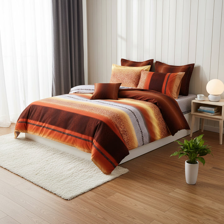 مصنوع من خامة 100% قطن ساتان بملمس حريري ناعم ووجهين مزدوجين (Double Face) لتغيير شكل الغرفة بسهولة.