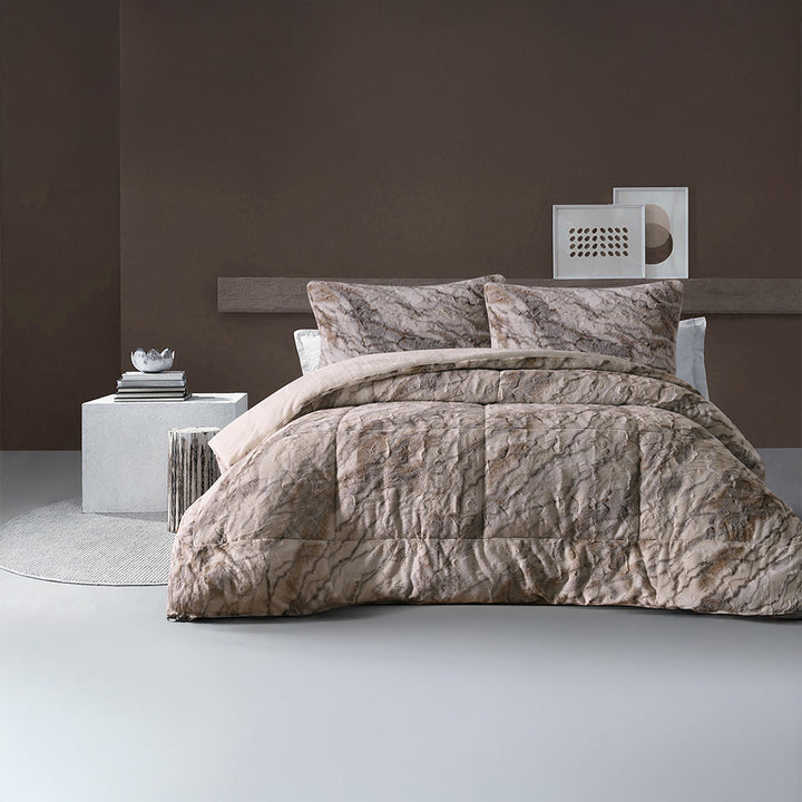 دلّلي نفسك مع طقم اللحاف الشتوي فرو الأرنب المطبوع موديل 1623 من فاميلي بد، المصمم بخامة ناعمة ودفء مثالي ليالي الشتاء الباردة، مع نقوش أنيقة تضفي لمسة فاخرة لغرفة النوم.