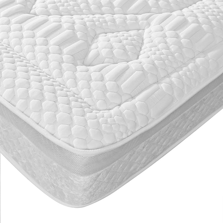 • قماش كنار قطيفة فاخر + قماش 3D Mesh مخصص لتهوية المرتبة ومنحها مظهر جذاب.