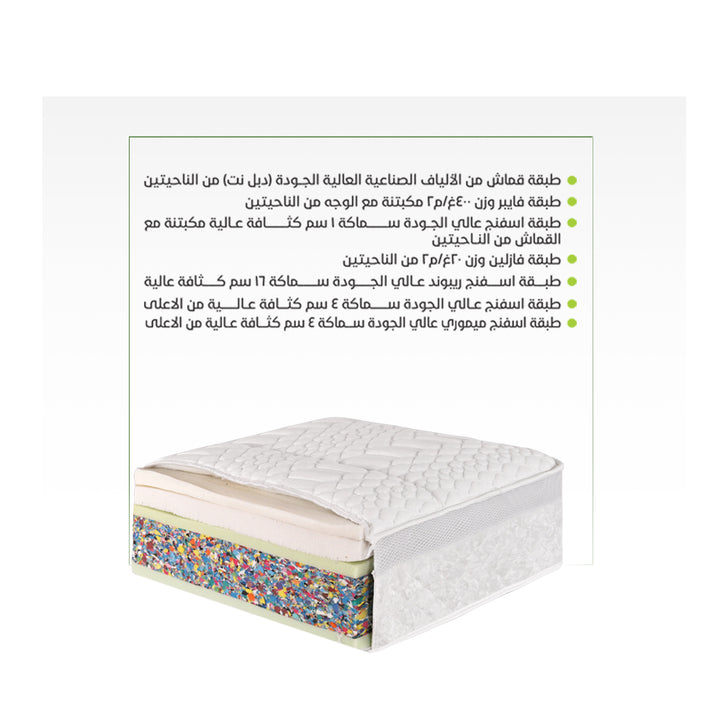 • طبقة إسفنج عالي الجودة سماكة 3.2 سم من الجانبين لدعم متوازن.