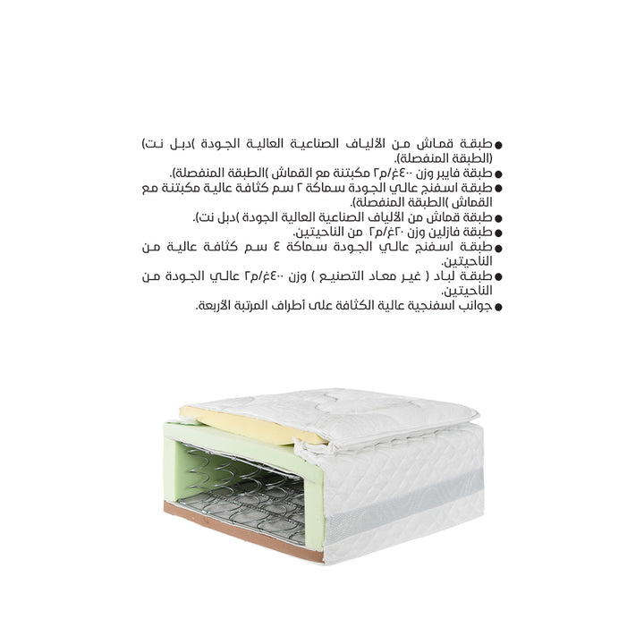 • جوانب إسفنجية عالية الكثافة على أطراف المرتبة الأربعة للحفاظ على الشكل والمتانة.