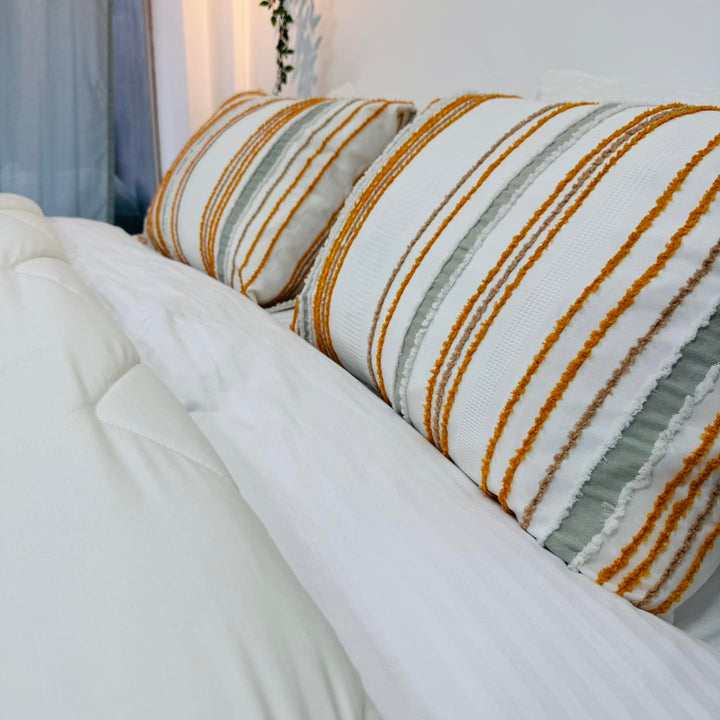 ✔️ التصميم: وجه مطرز أنيق + وجه سادة (دبل فيس) لتجديد مظهر غرفتك بسهولة.