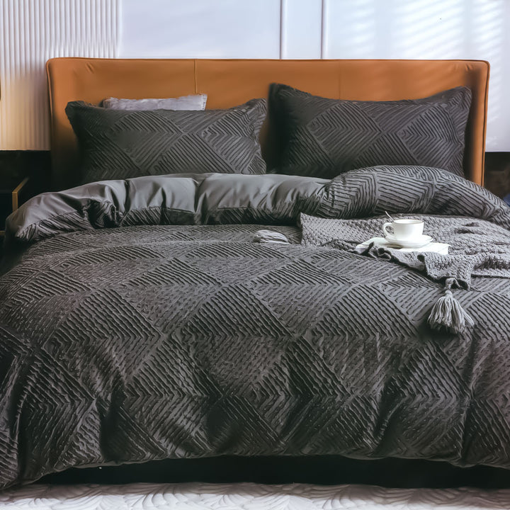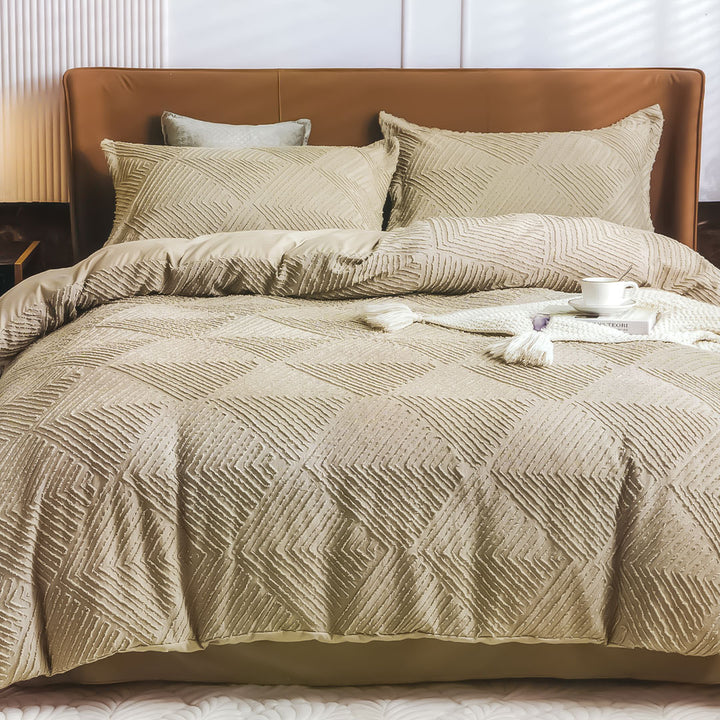 تجمع هذه الكوفرته بين الخامة القطنية المريحة والتطريز البارز الأنيق لتمنحك شعورًا بالفخامة والراحة في آن واحد.