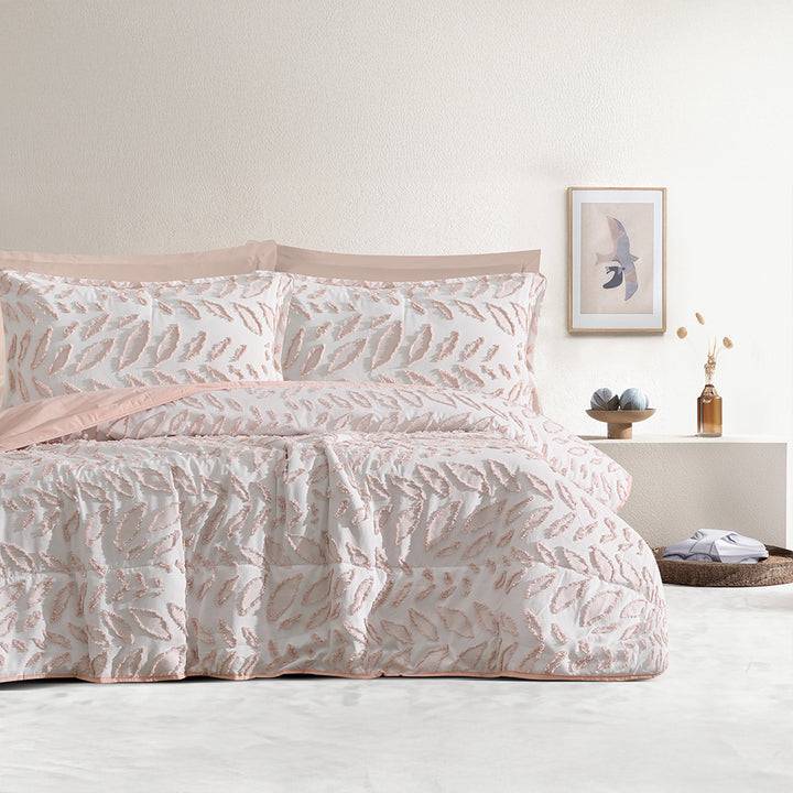 - 3 قطع: كوفرته (220×240 سم) + 2 كيس مخدة (50×70 سم) – الوزن 3.5 كجم