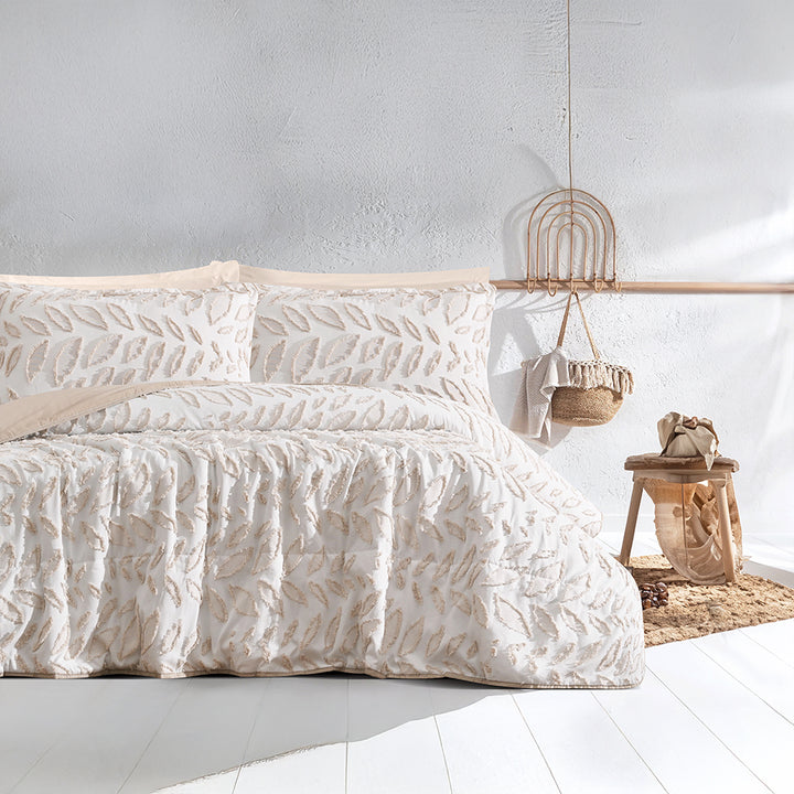 تجمع هذه الكوفرته بين الخامة القطنية المريحة والتطريز البارز الأنيق لتمنحك شعورًا بالفخامة والراحة في آن واحد.