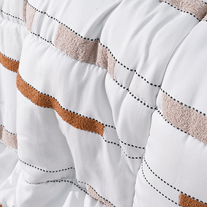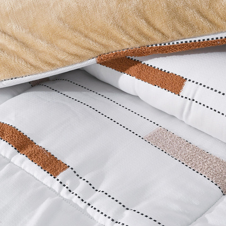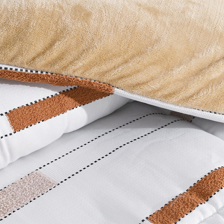 بتصميم عصري يجمع بين وجه مطبوع برسومات بارزة تضيف لمسة جمالية لغرفة النوم، ووجه قطيفة ناعم يمنحك شعورًا مريحًا ودافئًا في الليالي الباردة.