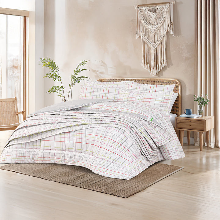 أضيفي لمسة دفء وأناقة لغرفة نومك مع طقم اللحاف القطني من فاميلي بد. مصنوع من خامة 70% قطن لراحة وتهوية ممتازة ومتانة تدوم طويلاً. يتميز بتصميم Double Face يمنحك مظهرين في لحاف واحد.