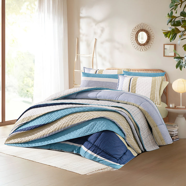 أضيفي لمسة دفء وأناقة لغرفة نومك مع طقم اللحاف القطني من فاميلي بد. مصنوع من خامة 70% قطن لراحة وتهوية ممتازة ومتانة تدوم طويلاً. يتميز بتصميم Double Face يمنحك مظهرين في لحاف واحد.
