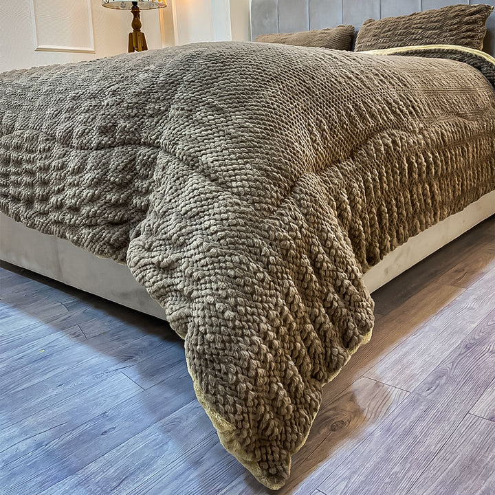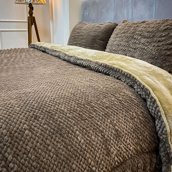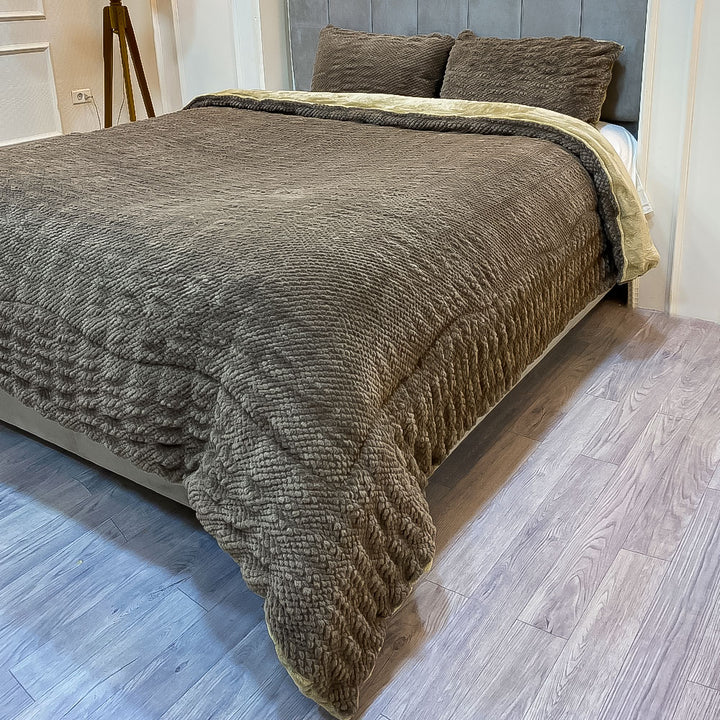 أضف لمسة دافئة وفاخرة لغرفة نومك مع لحاف فرو إسباني موديل 1617 من فاميلي بد.