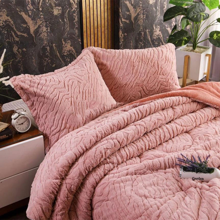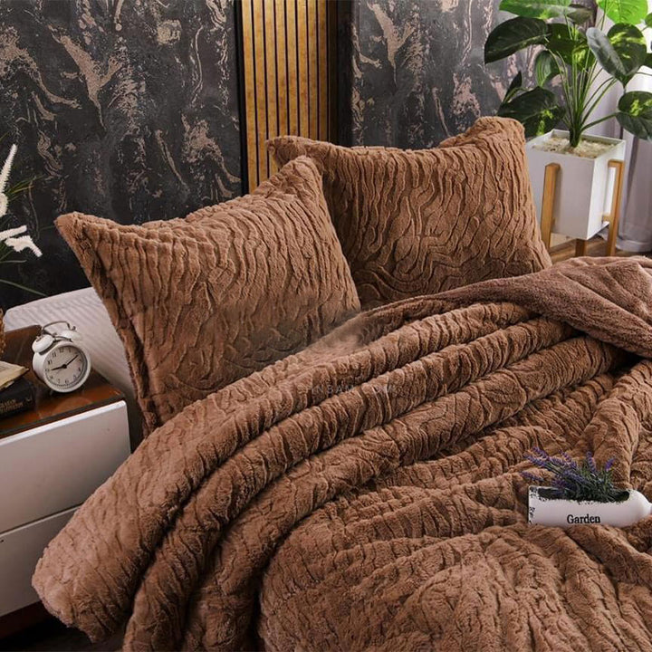 أضف لمسة دافئة وفاخرة لغرفة نومك مع لحاف فرو إسباني موديل 1619 من فاميلي بد.