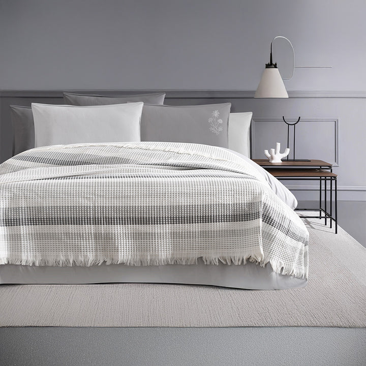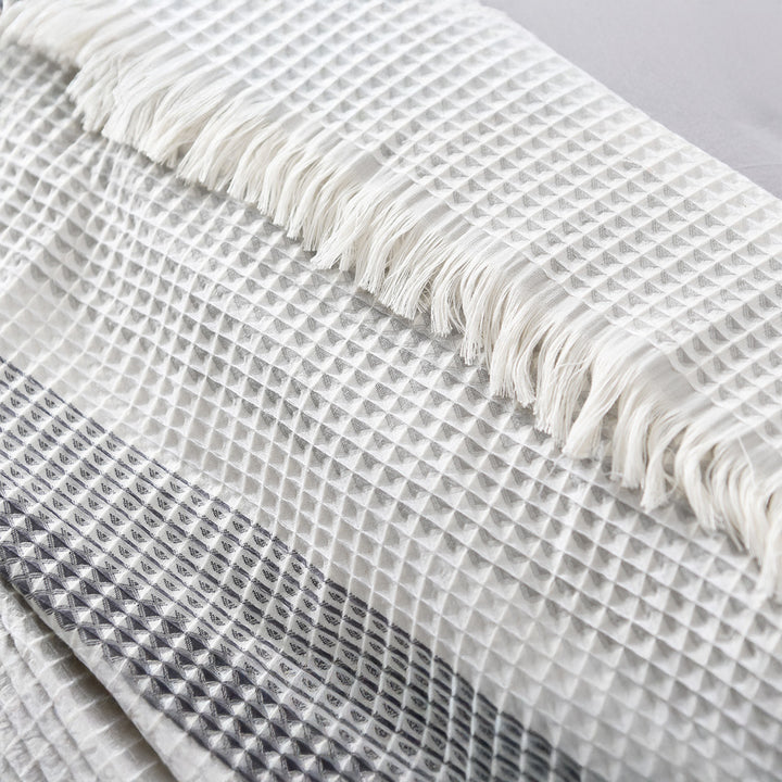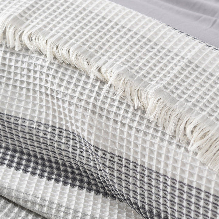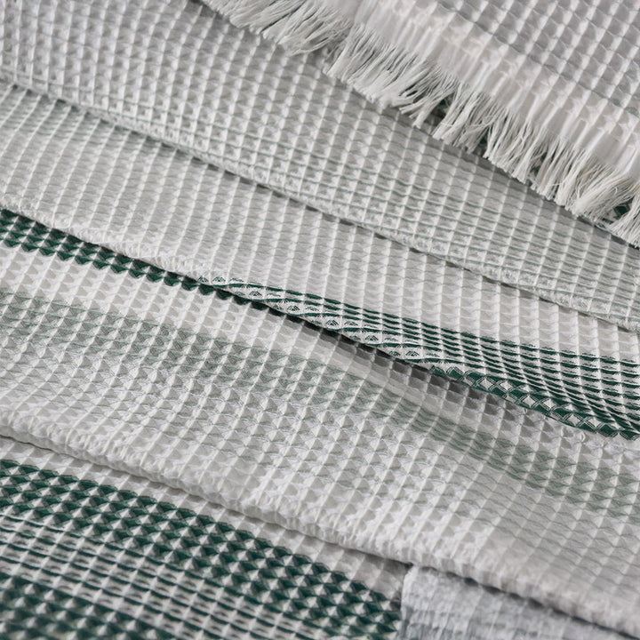 يتميز بتصميم عصري منسوج بخامة مجفرة ناعمة تضفي لمسة فاخرة وبسيطة في نفس الوقت، مما يجعله الخيار المثالي للاستخدام اليومي أو لتجهيزات الفنادق والضيافة.